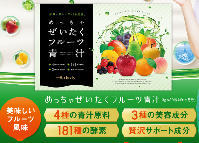 「めっちゃぜいたくフルーツ青汁」とか、もうフルーツ風味でうまし!
