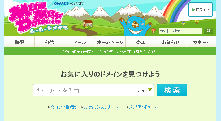 「ムームードメイン」は「ロリポップ!レンタルサーバー」を運営する GMOペパボ株式会社の低価格ドメイン取得サービスです。
